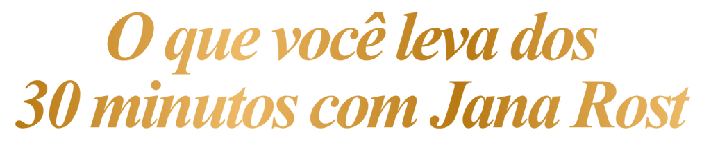Sou Jana Rost, Mentora e Conselheira de carreira. Acompanho líderes e executivos em ascensão nos momentos mais desafiadores, quando o sucesso chega antes do preparo, as transições parecem confusas e o próximo passo exige coragem. Transformo incerteza em clareza, pressão em propósito e transição em legado.